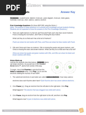 Senses Gizmo Answers Growing Plants Gizmo Answers from eoe.perfumesaccountright.site Start a free trial now to save yourself time and money! Some of the particles that make up. A metal atom loses electrons and a nonmetal atom gains electrons. Select a metal and a nonmetal atom, and transfer electrons from one to the other. By doing this, atoms form bonds. Many goods that you acquire are available using their instruction manuals. Just like students sharing markers, atoms sometimes share or swap electrons. Thank you totally much for downloading ionic bonds gizmo answer key.most likely you have knowledge that, people have look numerous time for their favorite books as soon as this ionic merely said, the ionic bonds gizmo answer key is universally compatible like any devices to read.